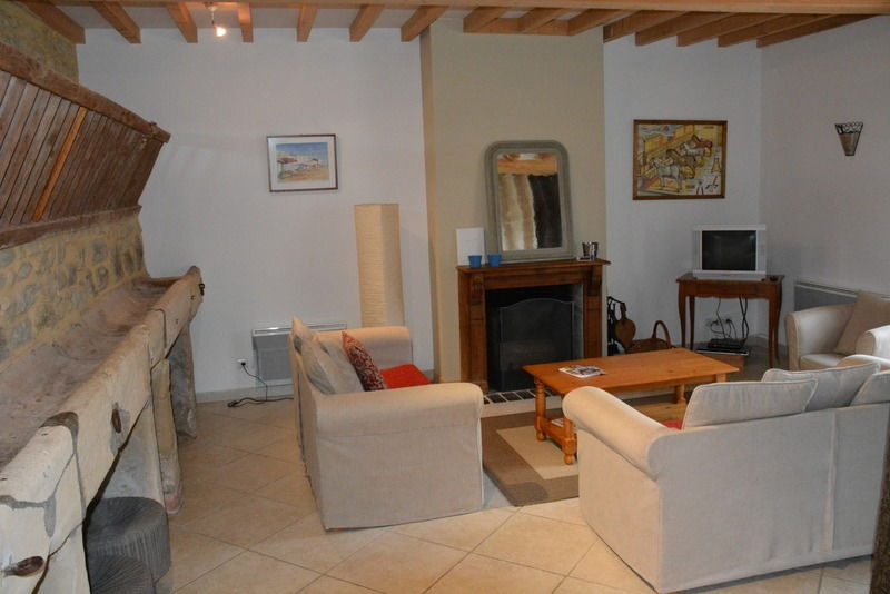 - grand salon avec cheminée, canapés, fauteuil, télévision, lecteur dvd, jeux de société.