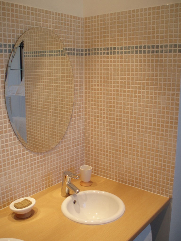 - salle de douche et deux vasques commune à ces deux dernières chambres,