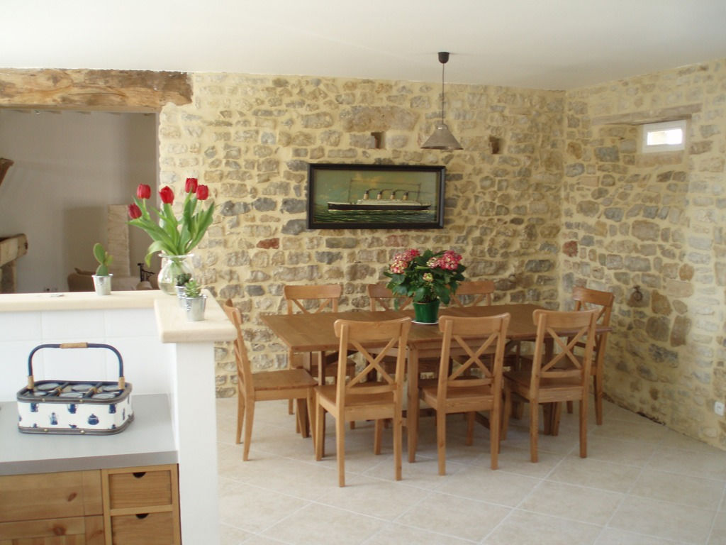 - grande pièce salle à manger (grande table 12 couverts si réunion des familles des deux gîtes) et cuisine américaine très bien équipée : réfrigérateur/congélateur, four électrique, four micro-ondes, plaque vitrocéramique, lave-vaisselle, lave-linge, petit matériel électrique …, tout équipement de vaisselle. Planche et fer à repasser, aspirateur, séchoir à linge.