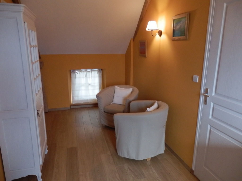 - une avec un lit de 160 x 200, petit coin salon et salle de bains privative,