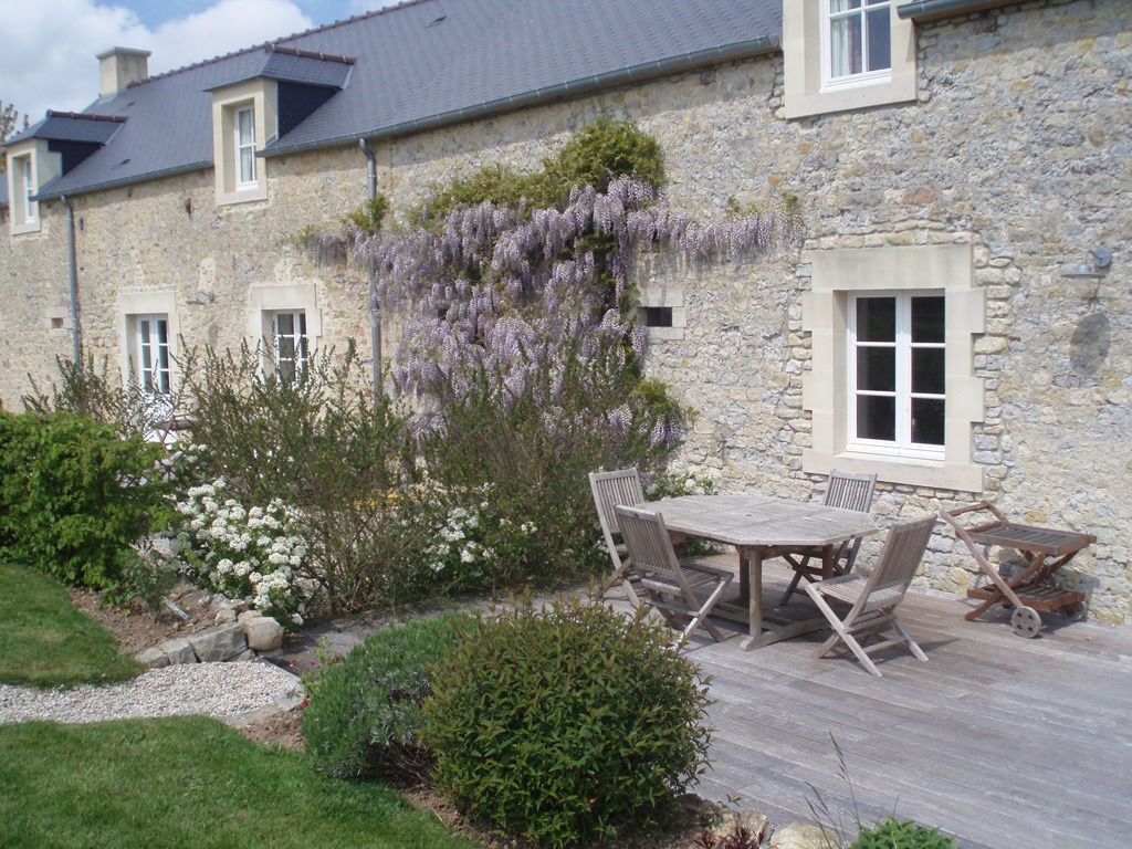 Grande terrasse en bois exposée plein sud, jardin privé, salon de jardin et parasol, barbecue. Accès grand verger avec jeux de plein air pour les enfants, deux terrains de boules et filet de badminton. Parking.