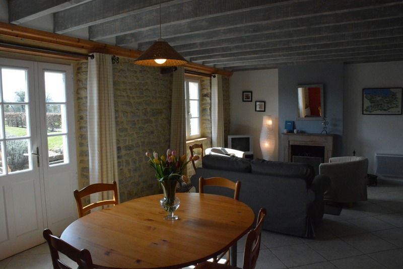 - une pièce salle-à-manger/salon avec cheminée, télévision, lecteur dvd, jeux de société, cuisine américaine toute équipée réfrigérateur/congélateur, four électrique, four micro-ondes, plaque vitrocéramique, lave-vaisselle, lave-linge, petit matériel électrique …, tout équipement de vaisselle. Planche et fer à repasser, aspirateur, séchoir à linge.